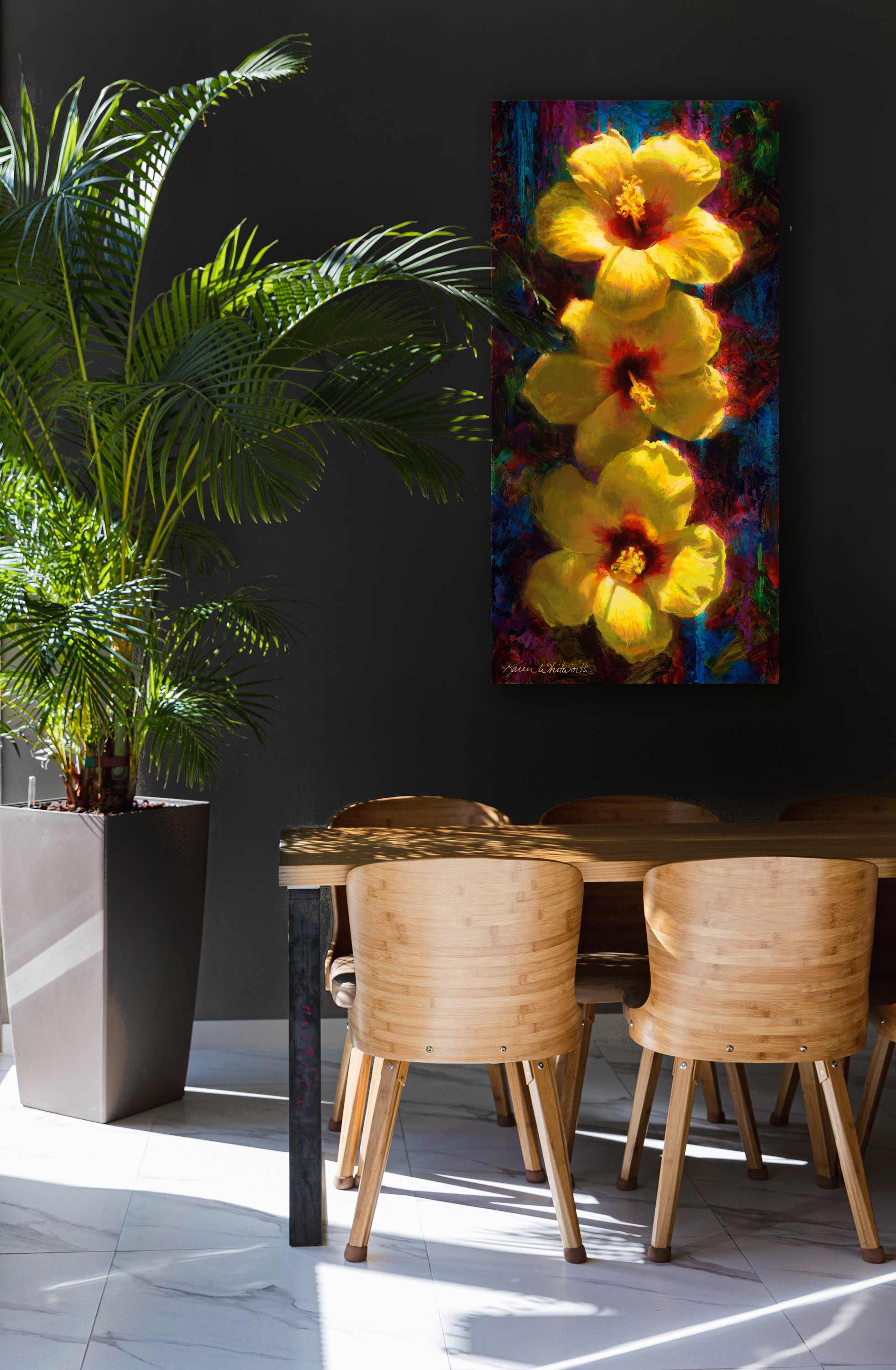 As her portfolio continues to grow, Karen's love for nature remains a prominent hallmark in her works. Her use of vivid colors and bold brushstrokes draws collectors to her art, but it is the captivating quality of her work that truly sets it apart. Karen's art is perfect for enhancing any living space or dwelling, elevating it with the vibrant and uplifting presence of Hawaii's natural beauty.