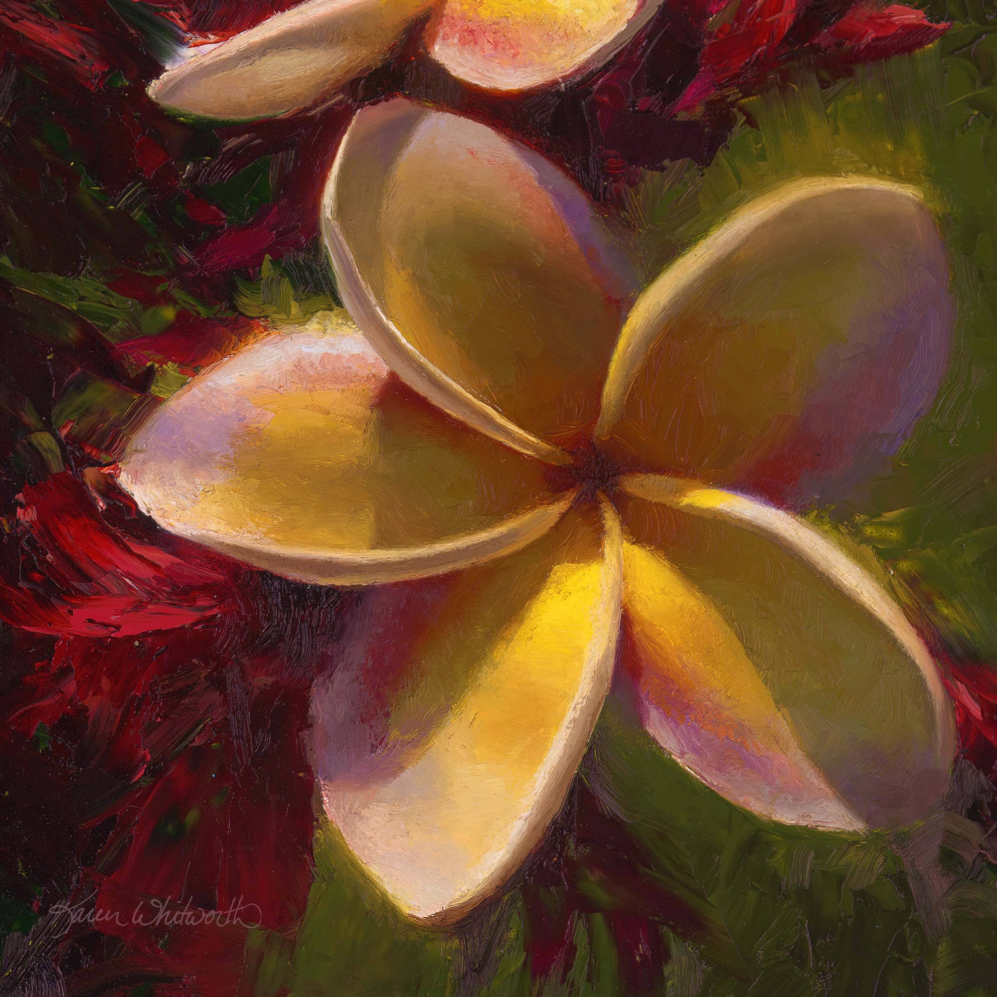 Plumeria painting by artist Karen Whitworth